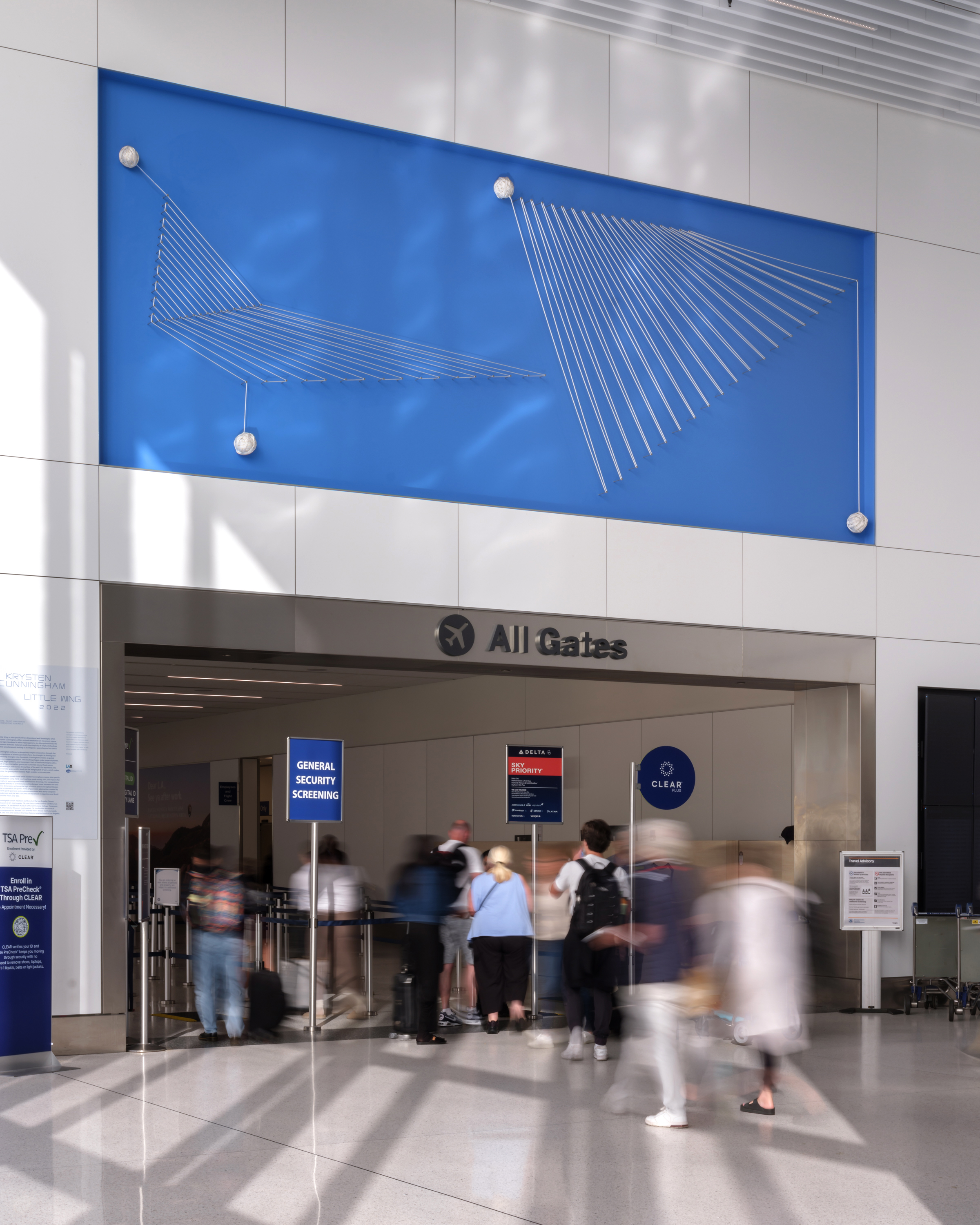 The installation is accessible to the public and overlooks the entrance to the TSA checkpoint
