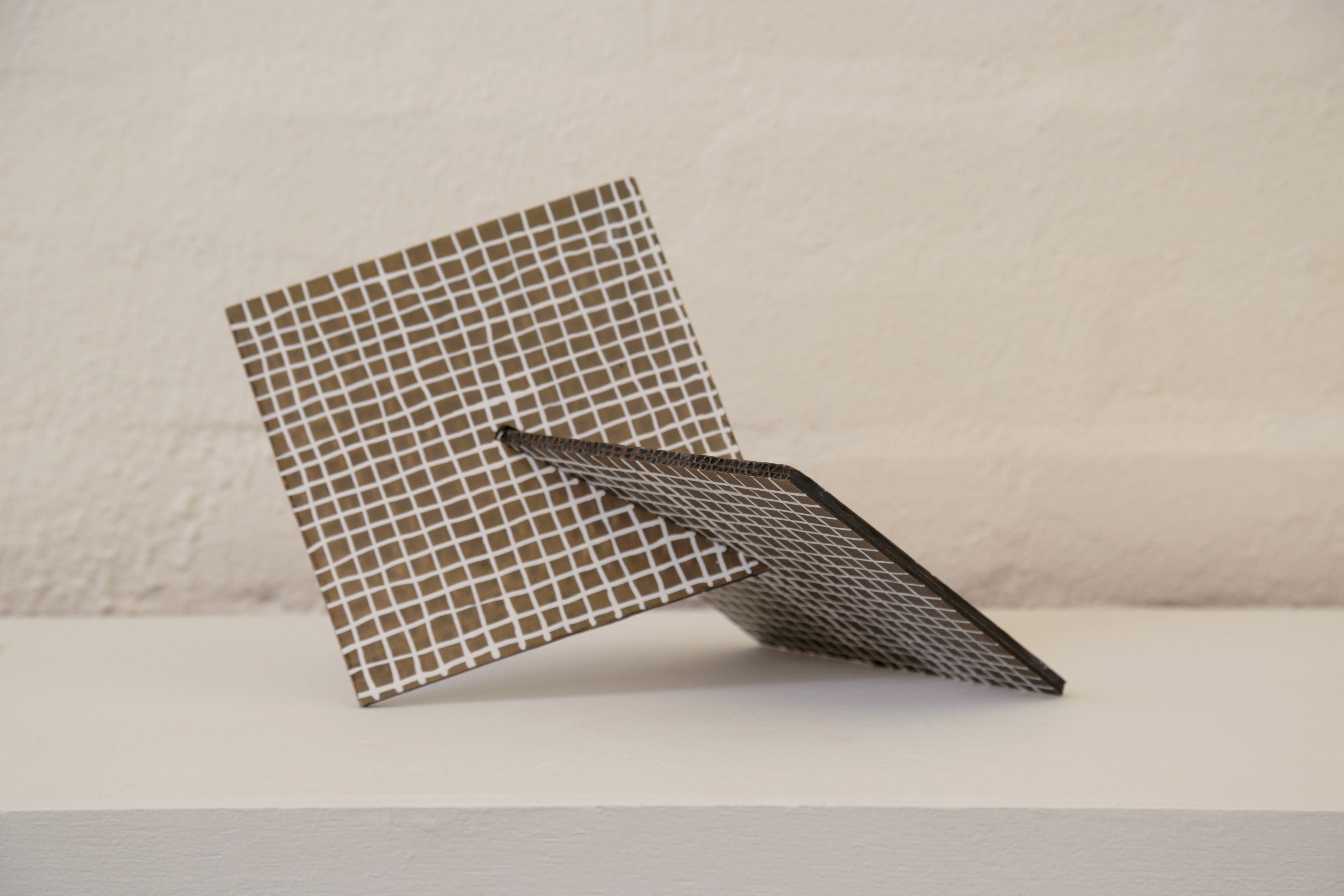Each of the jute drawings is accompanied with a pencil drawing that hangs in place of the sculpture when it is not on view.